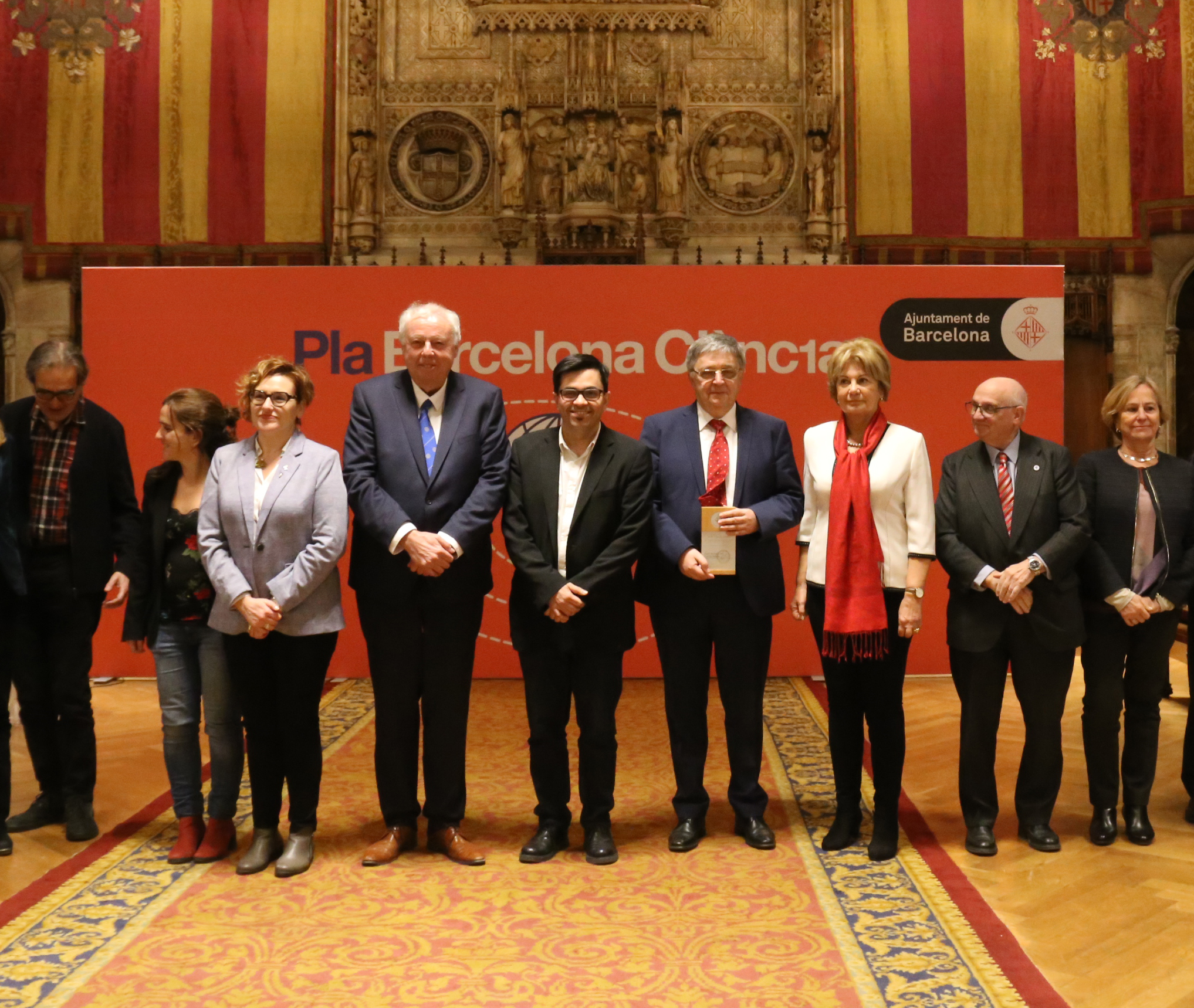 Molts matemàtics de la BGSMath, el consorci de les quatre universitats catalanes UB, UAB, UPC, UPF, i del Centre de Recerca Matemàtica (CRM), van presenciar ahir l’acte de lliurament a la Sala de Cent de l’Ajuntament de Barcelona i van escoltar la seva xerrada “Graph Theory – from puzzles to a new parad”.