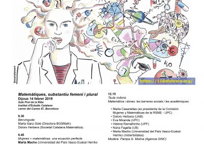 Les matemàtiques celebren també avui el dia dedicat per les Nacions Unides a promoure la presència femenina a la ciència i a fomentar la plena igualtat en l’acadèmia i la recerca. Enguany, a tota Espanya en els dies que van des de l’1 al 15 de febrer s’organitzen més de 2200 activitats, amb un miler d’investigadores i investigadors involucrats en la divulgació i la sensibilització sobre el tema del gènere i la ciència.