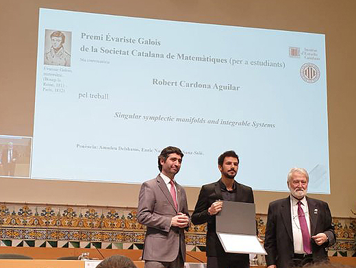 On April 30, the Catalan Society of Mathematics (SCM) awarded UPC and BGSMath’s PhD student Robert Cardona the Éveriste Galoise Award (Premi Évariste Galois) 2019 for his work “Singular symplectic manifolds and integrable systems”. The jury emphasised the amount, quality and originality of the work, especially given the young age of the awardee, who is working in Eva Miranda’s Geometry and Dynamical Systems group and is conducting his thesis under her direction. Miranda is the UPC representative on the BGSMath Governing Board.