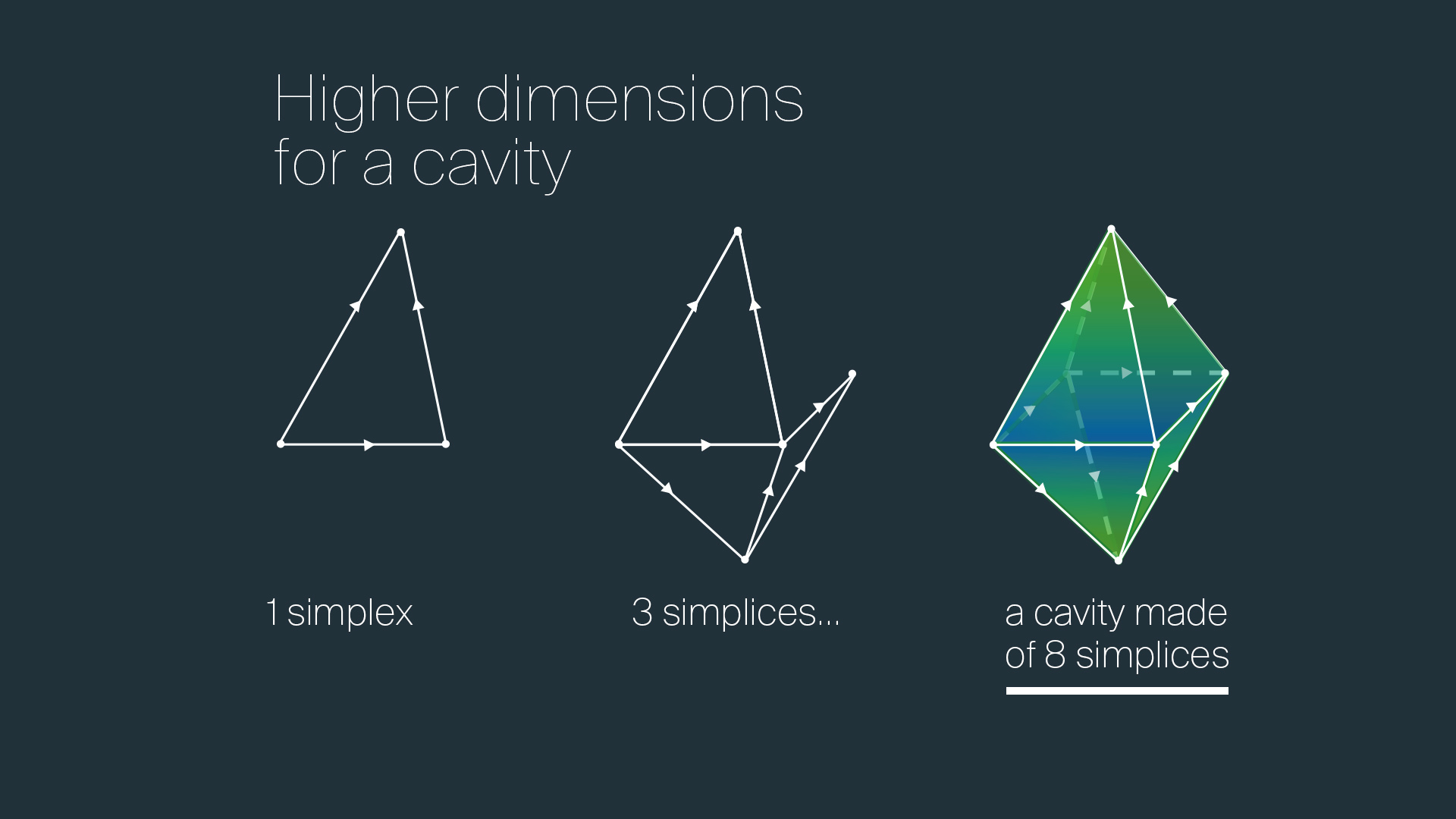 We make an abstract representation of circuits of neurons and how they connect together. We represent a neuron with a dot, and a connection with a segment. An arrow indicates a flow. We then construct “directed simplices” that represent families of neurons working together. The higher the “dimension” (a geometric representation of the structure in the neural network) of the simplices, the higher the coordination of the signal. We find that we have up to 8 neurons working together to amplify a signal. As you can see, algebraic topology has given us the tools to discern the inner structures in the brain and its functions.