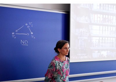 Three moments of Kathryn Hess’ Colloquim in Barcelona, at the Centre de Recerca Matemàtica (CRM); the last three images were presented by Prof. Hess during her presentation and are provided by the Blue Brain Project.