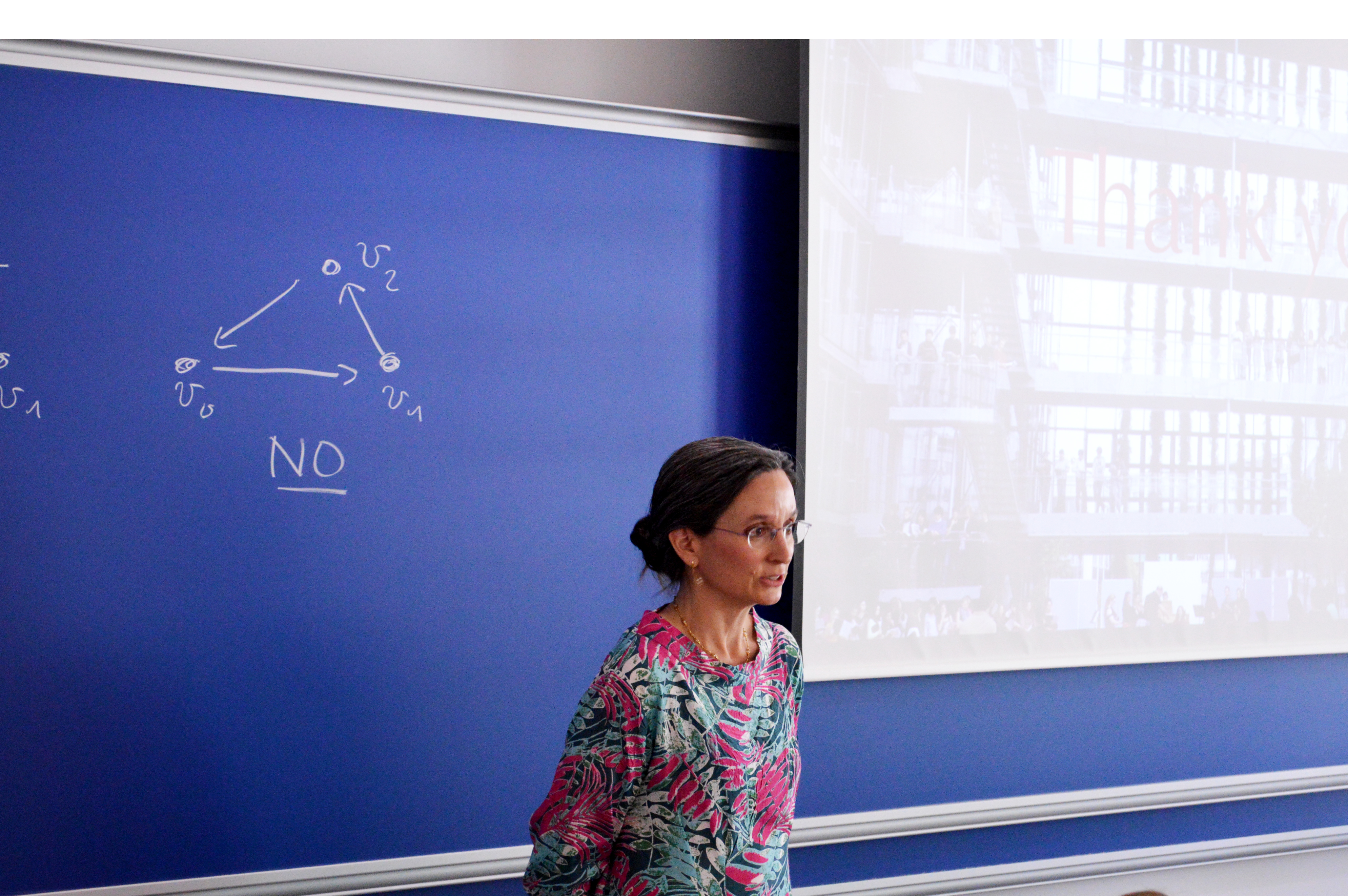 There were very few female role models when I was a child, few enough that I remember all of them. One was when I was in the accelerated programme myself. One day, a woman gave the only real math lecture about non-Euclidian geometry. It was exciting for me to discover that you could change the rules and the axioms and still get a functioning geometry! The most exciting thing I had ever heard was taught to me by a woman. Another one was at the university. At the time, I wanted to become an astrophysicist, so I took a lot of physics courses. One day, the teacher of my electromagnetism course, the only woman I ever had as a professor, told me: “you are doing very well in my course because you are a very good mathematician. But you have no physical intuition”. I was relieved – because being a physicist wasn’t coming naturally to me. She said something important to me at a crucial time of my life. Today, we are still too few women – and yes, I believe visibility is crucial for us!